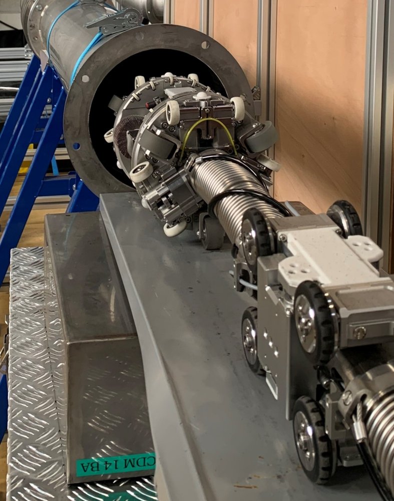 The majority of the robot fleet includes grinding technology originally invented by INSPECTOR SYSTEMS for the targeted machining of internal weld seams, followed by an extraction system designed to removing the grinding dust. In addition, a gripper arm system provided by Framatome and adapted to the pipe-robot supports the removal of other foreign particles in the pipeline. Non-destructive tests such as visual inspection, axial laser scanning and gamma ray inspection are carried out with the robots to verify the welded joints. In addition, a wide variety of specific modules from Framatome can be adapted and used on a robot system via a special interface. Depending on the application, the robots must also be able to be inserted into the pipeline through confined fittings. These highly complex processes require extensive specifications and must be regularly adapted to the prevailing conditions.