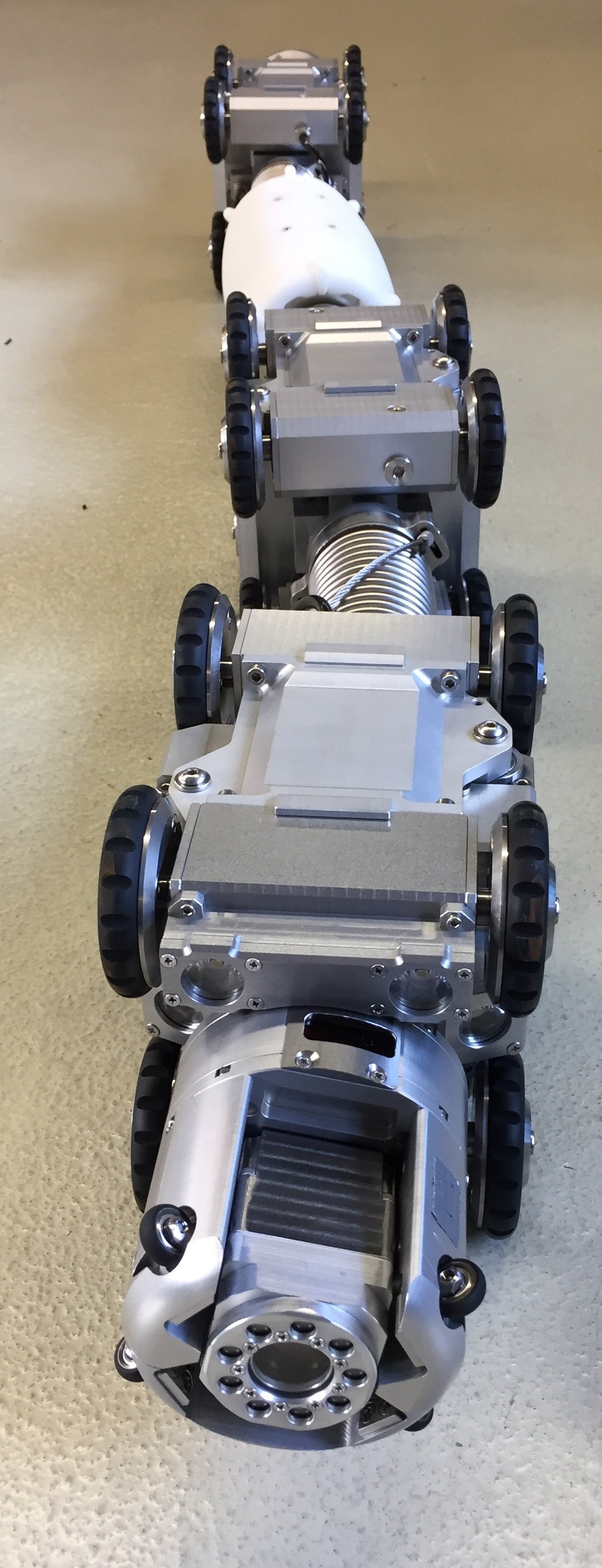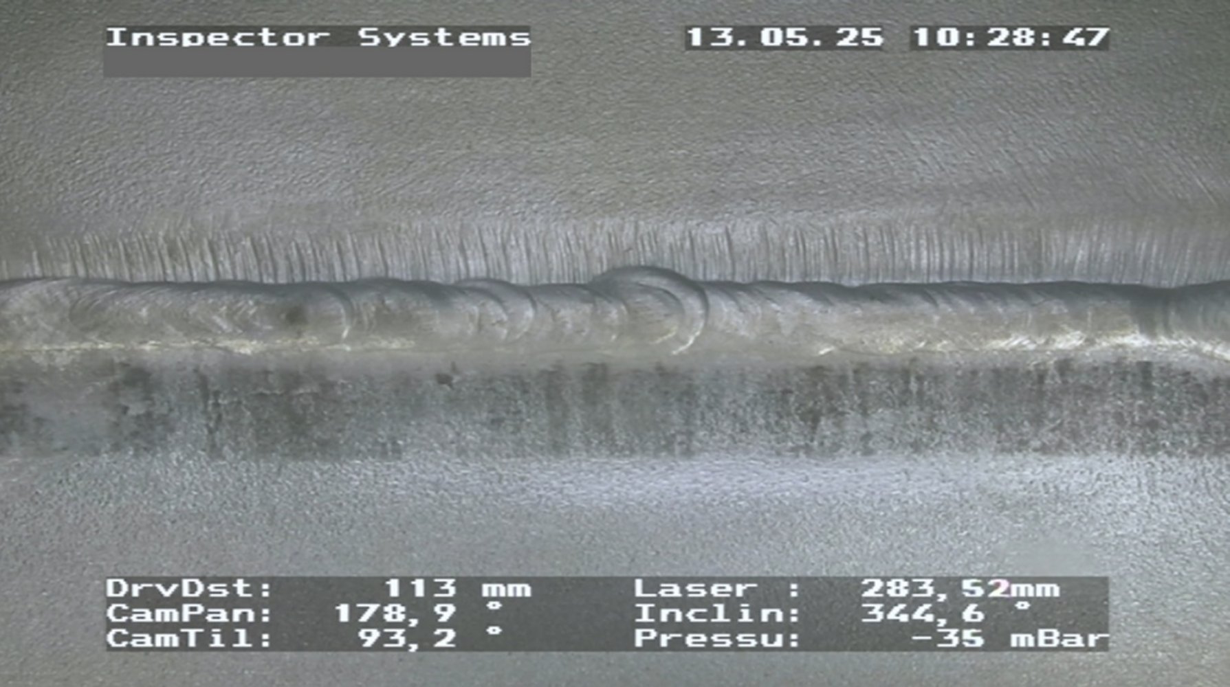 A Video-Laser Inspection Robot type 4.000 (ID 180 to 325 mm) from INSPECTOR SYSTEMS was used, equipped with a high-resolution color camera, 10x optical zoom and automatic/manual focusing. An integrated pan/tilt function allows the camera to rotate 360° and tilt 110°, so that every part of the pipe surface can be inspected.